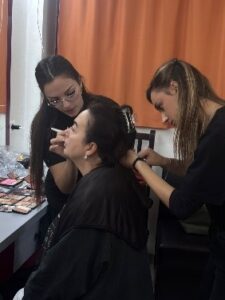 Studentët e programit Make Up Artist dhe Hair Artist dhanë një kontribut të rëndësishëm artistik në komedinë misterioze “Shumë Pak Vrasës”, me regji të Rozi Kostanit, e cila u vu në skenë në Teatrin Skampa gjatë muajit Nëntor e Dhjetor 2025. Përgjatë gjithë përgatitjes dhe zhvillimit të shfaqjes, studentët u angazhuan në procesin profesional të grimit skenik dhe stilimit të flokëve të aktorëve, duke përshtatur pamjen sipas karaktereve dhe kërkesave dramaturgjike të veprës. Përmes këtij bashkëpunimi ata fituan eksperiencë reale në mjedisin teatror, zhvilluan aftësi teknike dhe kreative, si edhe u njohën me ritmin, standardet dhe komunikimin e një prodhimi artistik të mirëfilltë. Ky angazhim shërbeu si një praktikë e vlefshme profesionale dhe një mundësi konkrete për të demonstruar talentin, përgjegjshmërinë dhe profesionalizmin e tyre në artin e grimit dhe stilimit.
